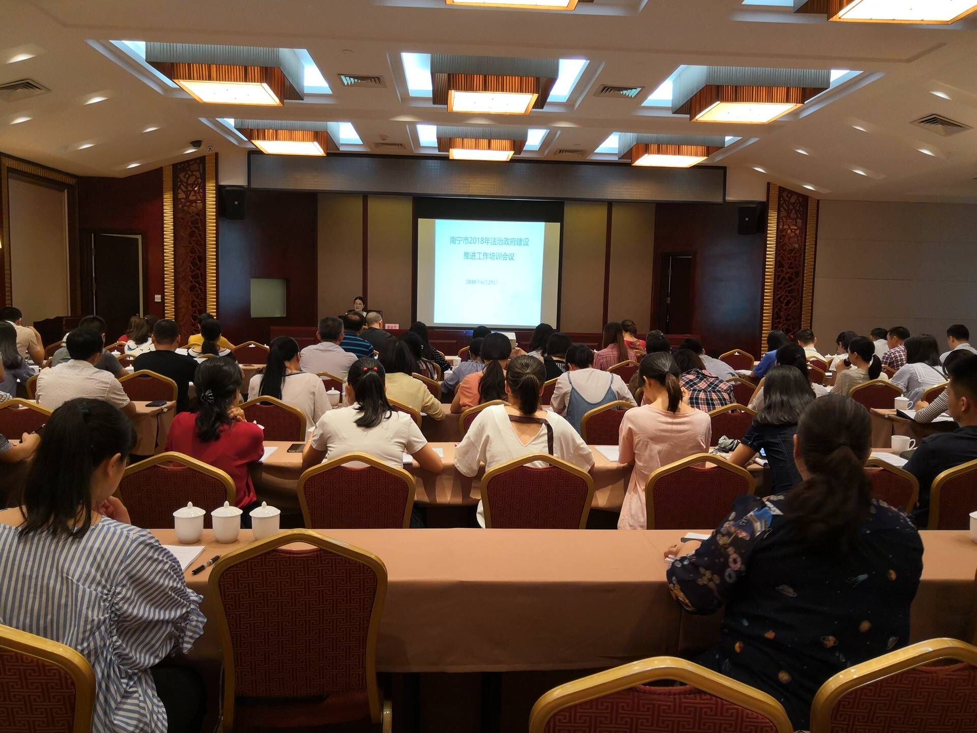 会议共四个部分,黄科长首先介绍了推进法治政府建设工作新动向,特别强调中央重新组建司法部,不再保留国务院法制办公室后依法行政、建设法治政府方面的职能和作用将得到加强,而非弱化。2018年6月4日,以建设法治政府为主题的省部级干部专题研讨班在北京开班。司法部部长傅政华的授课内容包括了大量下一步推进法治政府建设的具体信息。特别强调“法治政府建设督察要长出‘牙齿’来。”司法部党组书记袁曙宏提出:“要和环保督察一样有力度,即使一时长不出‘獠牙’,也要先长出‘利齿’来。”之后黄科长对自治区考评指标及工作要点、南宁考评指标及相关工作要求进行了解读。会议最后,黄科长希望全市各部门、各开发区、各县(区)要做好2018年法治政府建设工作,把工作做细、做稳、做扎实,每年必须要做的工作要持续推进并巩固,新一年的指标要仔细研究,积极作为,努力推进。会后,黄科长对各部门提出的疑问进行了解答。