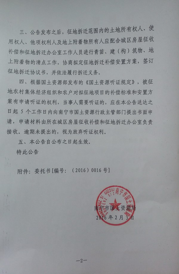 南国土征预〔2016〕12号 关于邕江综合整治和开发利用工程(南岸:清川大桥-五象大桥)项目征收土地预公告