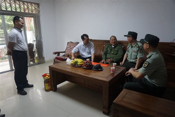 带着党和政府的关怀和温暖,在建党97周年来临之际,6月28日下午,市委常委、市警备区政委顾成祥走访慰问辖区老党员林文锦同志,江南区委常委、组织部部长潘耿华,江南区武装部政委宁建勇陪同,并送上节日的问候和美好祝福。 在老党员林文锦家里,顾成祥常委与老人亲切交谈,认真聆听林文锦同志讲述参加抗日战争上思武装起义战争的经历。并亲切地询问老人家身体状况和生活情况。看到老人身体硬朗、精神矍铄,顾成祥常委十分高兴地说,今天的幸福生活是你们这一辈革命同志浴血奋战换来的,我们将永记心间,老党员为党的伟大事业奉献了一生,党和人民不会忘记。并向身边的同志交代到,老党员的经历和精神是党的宝贵财富,相关部门一定要切实照顾好这些为党的革命事业做出贡献的前辈,关心他们的日常生活,帮助解决实际困难,让他们的晚年生活幸福安康。